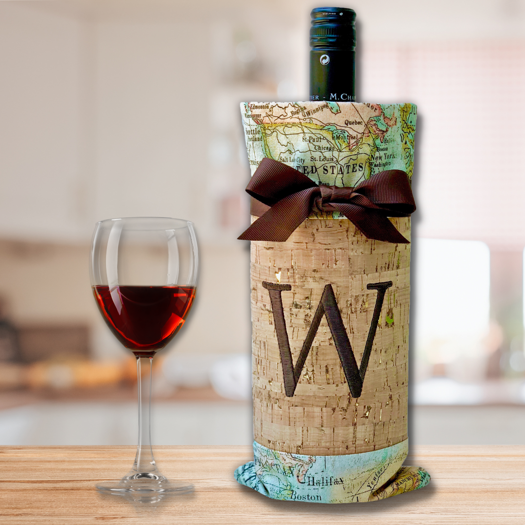 Monogrammed Cork Wine Bags In the Hoop Design